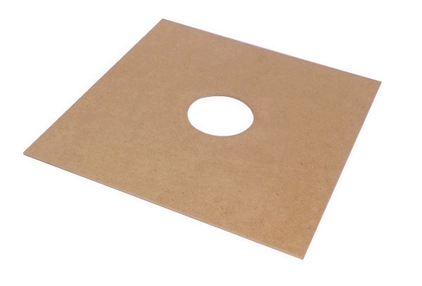 Dřevovláknitá deska s otvorem pro Jakubovské krmítko nebo tří-litrové sklenice s prosakovacím víčkem.